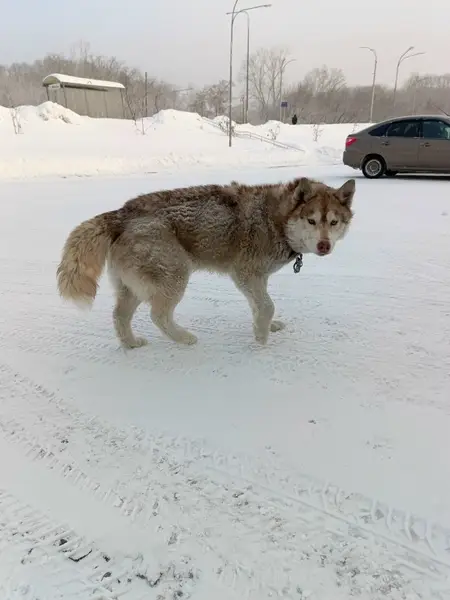 Хаски , кобель , окрас коричнево рыжий , особые приметы был в ошейники на ошейники висела цепь небольшой кусок , на носы есть шрам копал яму и порезался, сорвался с цепи . Обычно он приходит и знает местность Комиссарова . Уже нету 5 суток , возможно кто то его увёл .