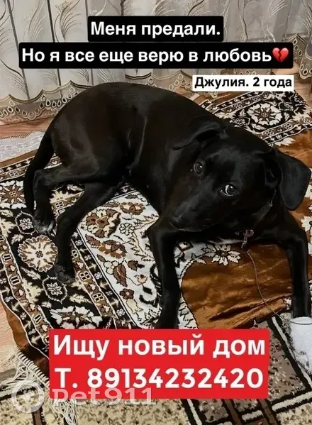 Меня предали. Но я все еще верю в любовь Привет. Меня зовут Джули. Мне 2 года 25 октября мой хозяин повез меня на прогулку, и я думала, что мы едем на нашу обычную прогулку в лес. Но он остановился у «Рудничного Бора», вышел, открыл мне дверцу... И уехал. А я осталась. Одна. С бумажкой, на которой написано только мое имя. Я не понимала. Я бегала по дороге, смотрела в след каждой уезжающей машине. Целый день я искала своего хозяина, что стерла лапку в кровь Но, кажется, в этом мире еще есть доброта. Меня подобрали хорошие люди. Они смыли с меня грязь, боль и страх, накормили и подлечили мою лапку. Они говорят, что я очень умная и добрая собака, и что я заслуживаю лучшей судьбы. Теперь мое сердце, разбитое на осколки, пытается снова научиться доверять. Я ищу дом. Настоящий дом. Я буду любить вас так преданно и искренне, как только может любить собака, которая уже знает цену предательства и готова ценить вашу любовь вдвойне. Подарите мне шанс снова верить. Пожалуйста —————— Телефон: +7 913 423 24 20 ️Отдадим только в добрые и ответственные руки!!! С обязательным отчетом о состоянии собаки. Готовы помочь с кормом и всем необходимым на начальном этапе ️ Долго держать не сможем, у самих две взрослые собаки. Если хозяин не найдется придется отдать в приют.