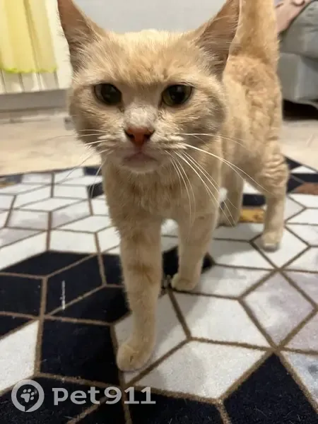 Рыжая кошка, очень худая. Рыжие кошки-редкость, так что хозяин должен понять. Просто металась по дороге и жутко кричала, стало понятно что она потерялась и не была на улице.