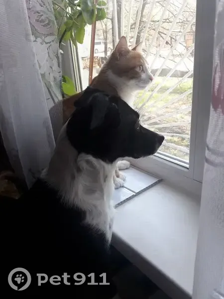 Чёрно-белая. С белым кончиком на хвосте. Увязалась за женщиной, пока заводили другую собаку домой, она пропала из полезрения. Обычно, так никогда не делала. Может откликнуться на имя, но в руки не пойдёт.