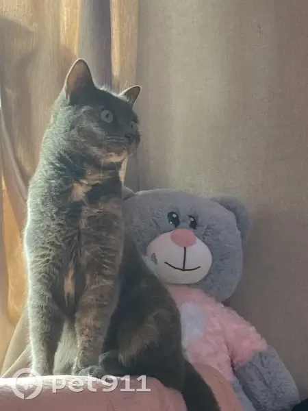 Худая, серая с бежевыми пятнышками. Живем в частном доме, она как обычно вышла во двор в обед и до сих пор не пришла. До этого она никогда не уходила дальше двора.