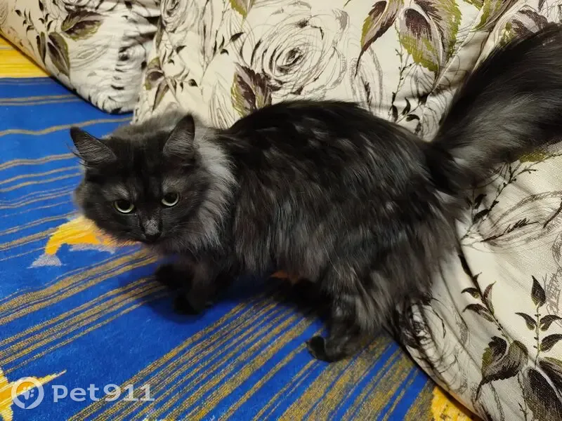Дымчатого окраса, основной черный, светлый подшёрсток, ласковая, домашняя. Предположительно в районе 13 - 15 часов либо незаметно выбежала в подъезд, либо спрыгнула на улицу через окно во время проветривания. Пропажу заметили вечером, проверили район вокруг дома, не нашли.