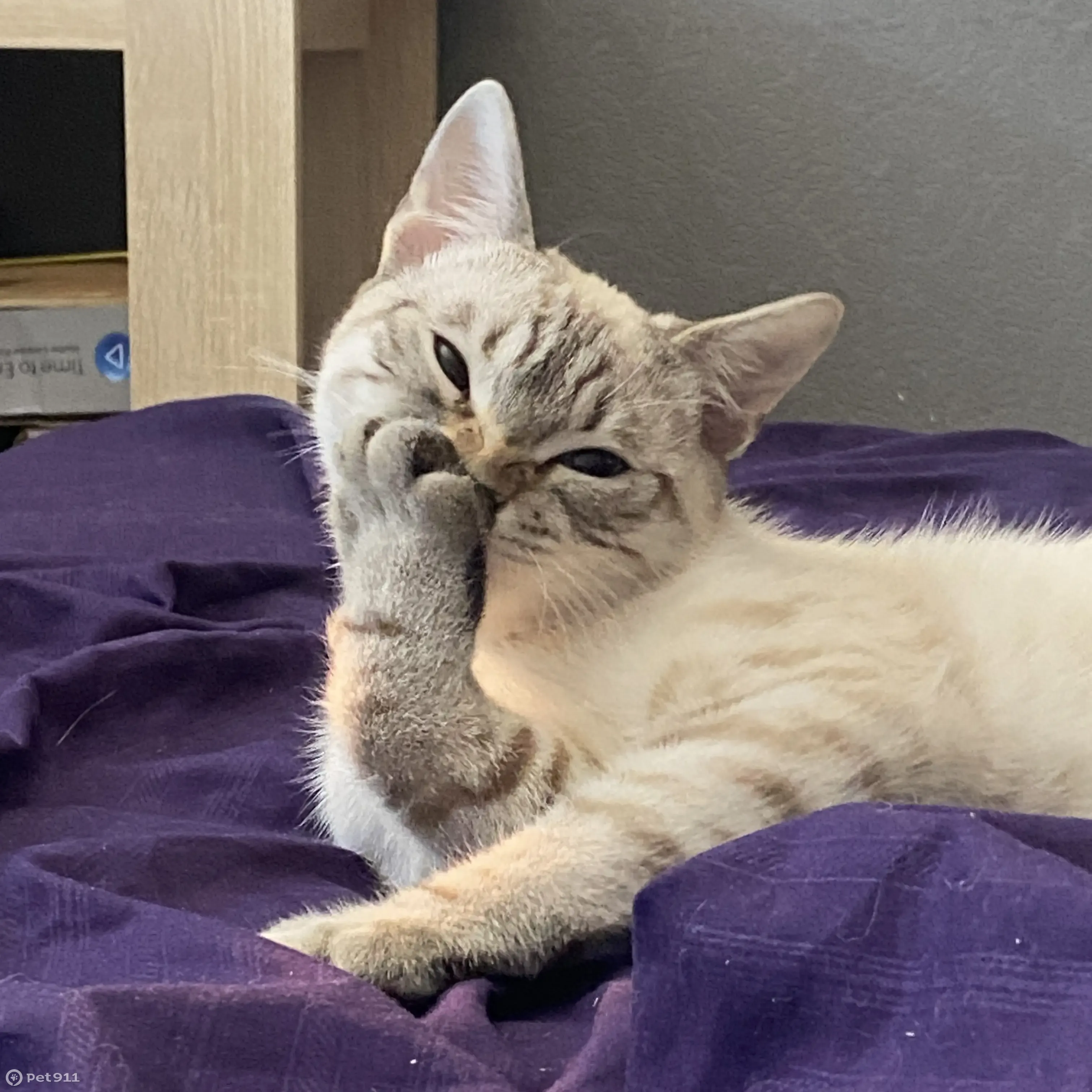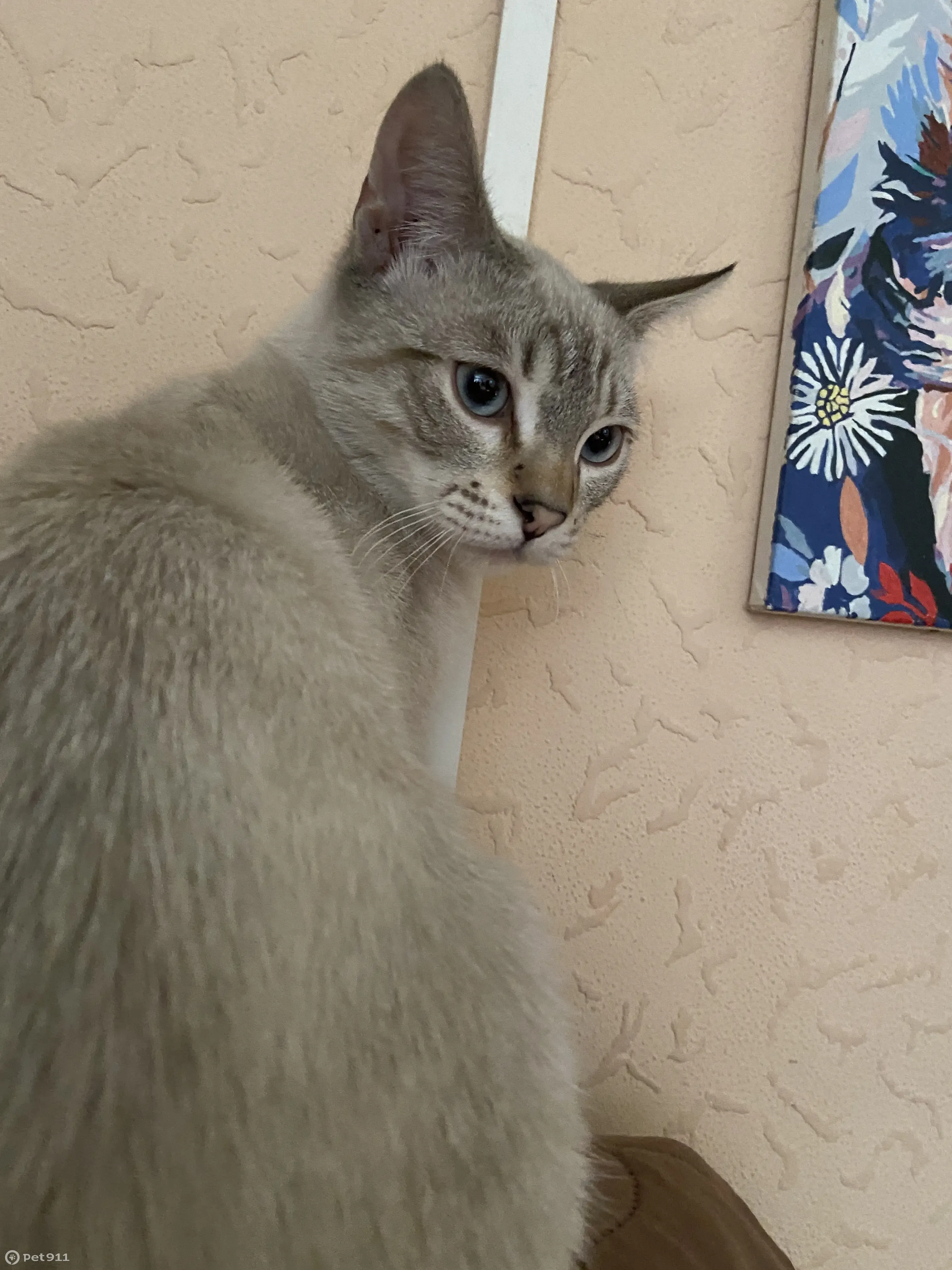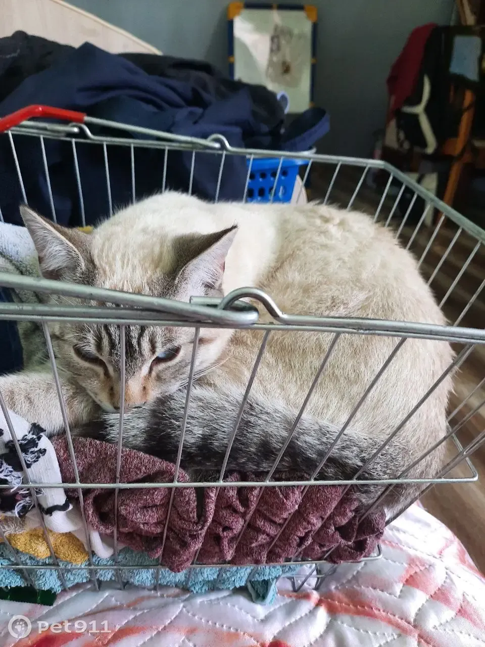 Мальчик, 7 месяцев, окрас бежевый в полосочку, большие голубые глаза. Потерялся, хотя дальше дома не убегал.