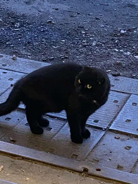 Нашлась кошка небольшого размера , ветеринары сказали 4-7 лет , цвет чёрный полностью без вкраплений , на кошке есть ошейник против блох . Нашли вечером 20.10 .2025 в районе складов в Химках .