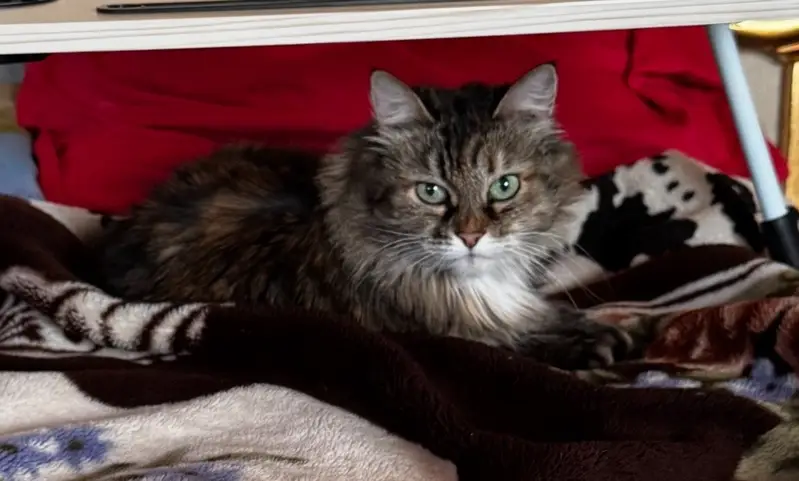 Спокойная кошечка, окраса черепахи, с зелеными умными глазами. Шерсть твердая. Есть шрам под хвостом. Кошка ласковая. Питомца свозили в вет. Клинику , сдали только кровь, показатели в норме. На вид сказали , что она здоровая. Выписали лекарства, которые уже выкупили. Имеется лоток, наполнитель, сухой/жидкий корм, лакомства и игрушки, а также переноска. Нашли ее следующим образом : просмотр камер на складе.