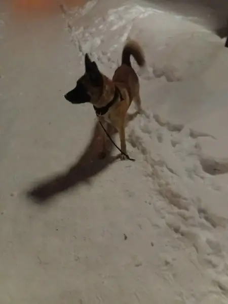 Щенок, до года, в ошейнике, девочка. Боится и очень голодная.