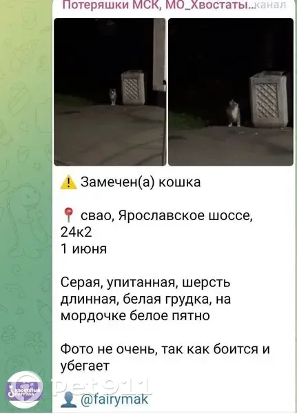 Кошка найдена: Ярославское ш.,...