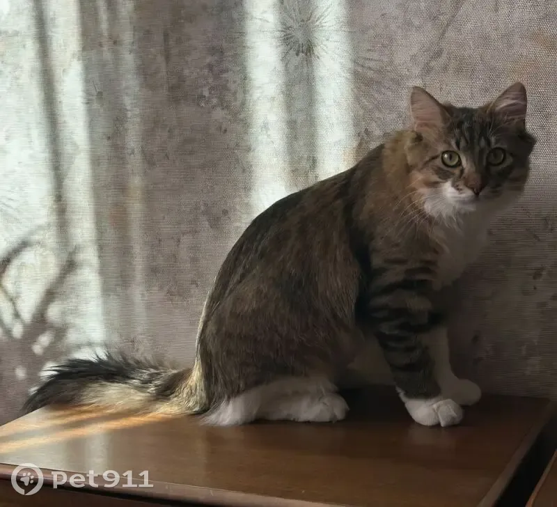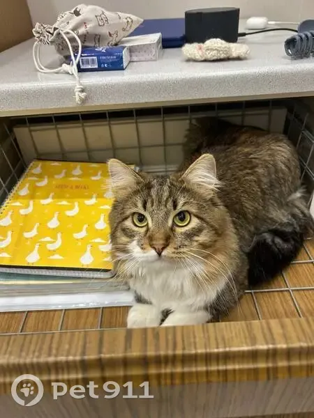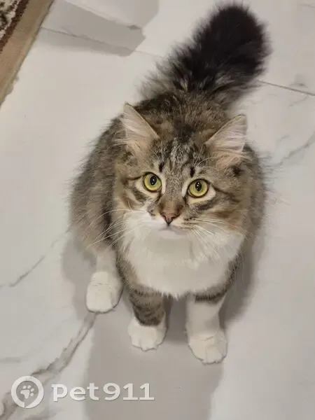 Возраст 1 год и 1 месяц Отличительные черты: длинношерстный, довольно крупное телосложение, лапки белые, пушистый хвост, жёлтые глаза Очень пугливый Не кастрирован Чаще всего отзывается на слово "кушать" Вынесли не в первый раз погулять, в моменте начал прыгать и вырываться из ошейника, и в итоге ошейник слетел с него. Побежал в гаражи, и дальше мы его упустили