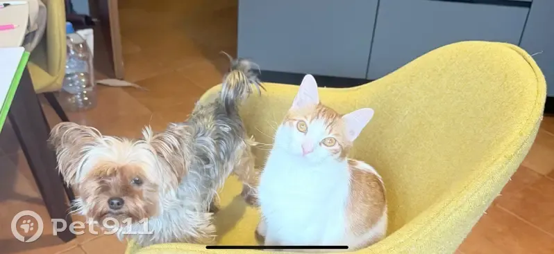 Бело-рыжий кот, откликается на кличку Разум! Около 2 лет ( точно не знает , тк сами подобрали с улицы в возрасте 1-го года. Кастрированный. Розовый нос, кажется большим.