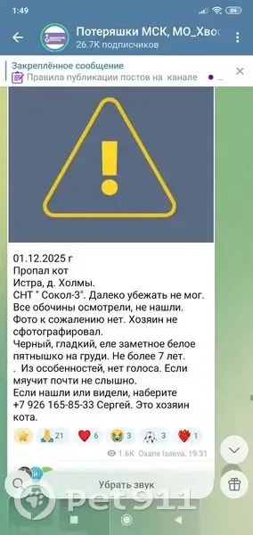 Каждый час поисковый робот Pet911 на основе искусственного интеллекта сканирует и распознаёт тысячи фото со всех тематических сайтов и социальных сетей для того, чтобы найти питомцев, похожих на вашего.