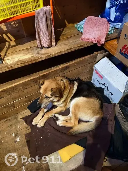 Окрас рыжий с черной спиной, висящие уши, ошейника нет (на фото импровизированный из ремня). Прибился к участку и лежал у калитки. Потерялся не менее нескольких дней назад, бока впалые, видно, что голодал и замерз. По характеру мягкий и податливый, но если пытаться гладить со стороны морды, может скалиться. Найден в д. Холуй Кировской области.