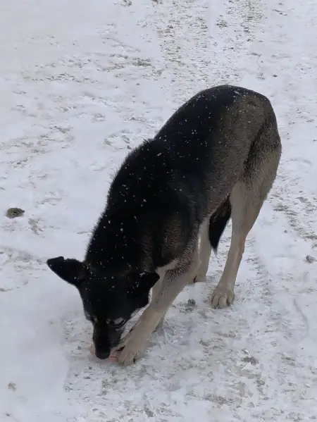 Тёмная спина, грудка и передние лапы белые. Добрый, доверчивый. Убежал вечером 25 ноября. Размер собаки с лайку.
