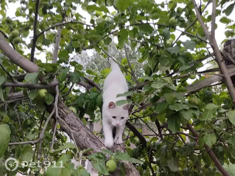 Пропал кот белый с голубыми глазами. На шее сзади едва заметное светлосерое пятно. Правый глаз немного косит. Пугливый, хотя к людям тянется. Возраст около 1 года. Пришел сам, жил у нас месяц. На кличку пока не отзывается. Пропал в районе Елшнягов