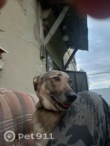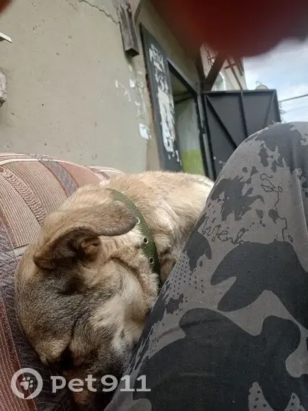Серая, дворняга, зеленый ошейник. Зовут Юта.