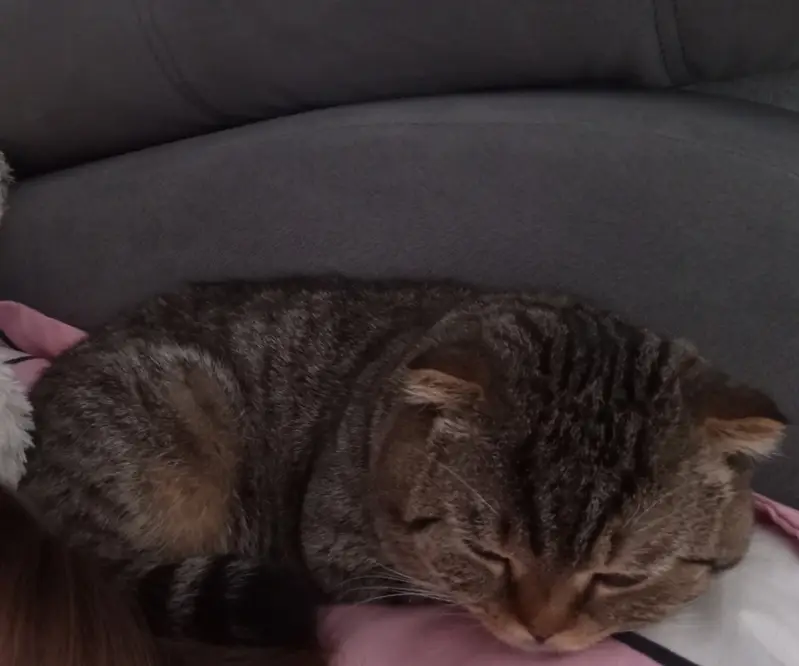Котенок месяцев 4-5 вислоухий шотландец, окрас коричневый. Сидел напуганный посреди дороги. От машин не уходил. Когда подошли, не убежал и взяли его с собой. Котенок домашний, возможно приучен к туалету, но скорее ходил в туалет на улицу. Ест обычную еду. Видно, что домашний и очень избалованный.