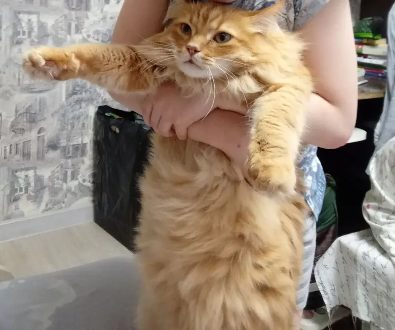 Окрас рыжий, длиношерстный, возможно кастрирован. Недели 2 сидел под крыльцом у подъезда, не могли выманить , узкая щель, не достать. Сейчас забежал в этот подъезд. Жильцы кота не признают. Объявления не дали результата поиска хозяина. Ищем старого или нового хозяина этому прекрасному молодому котику!