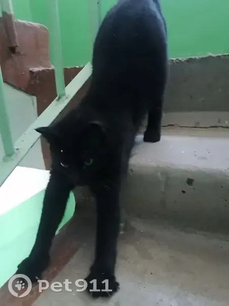Молодой кот, гладкошёрстный, основной окрас - чёрный, на груди белое пятно, несколько белых пятен на животе. Ласковый, игривый, видимых повреждений и заболеваний нет. Ухоженный, домашний.