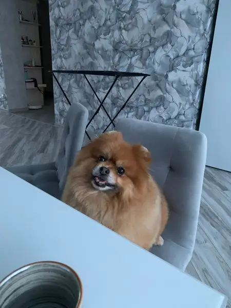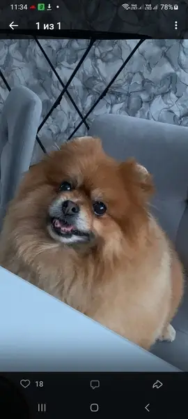 Шпиц рыжий, ухоженный. Нашла утром на прогулке с собакой