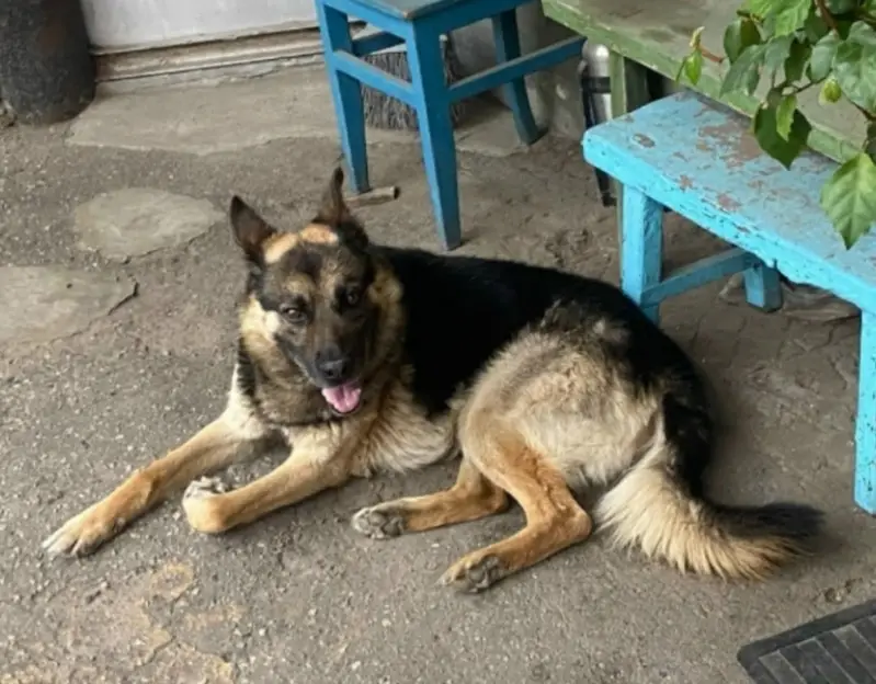 Порода- овчарка, взрослая. Лежала у гаражей. Смотрит очень преданно и жалобно, видимо отчаялась найти хозяина. Из нашего гаража не убегает. Очень спокойная, послушная, как будто понимает человеческую речь. Домой взять не можем( 2 кошки и лабрадор- девочка). Очень просим откликнуться хозяина или волонтёров взять на передержку.