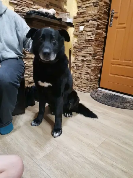Нашёл девочку, чёрного цвета с белой полоской на груди, стоял с собакой 10-15 минут, хозяин так и не появился, решил отвести к себе домой.