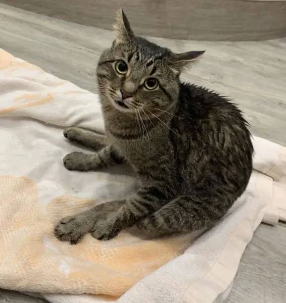 Приметы: серый ошейник, ушко в шрамах