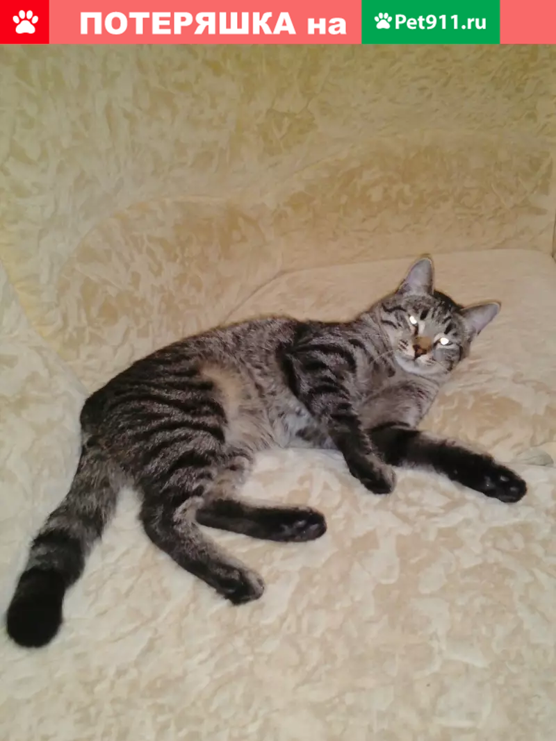 ВНИМАНИЕ! Потерялась кошка, серо-полосатая, возраст 1 год. Выпала с 6 на 7 июня ночью из окна с 4 этажа по ул. Маклина 59а. На улице не бывала, возможно, испугана и травмирована. Просьба задержать и вернуть за вознаграждение. Хозяйки в инете нет, только звонить т.. Фото похожего животного из инета.