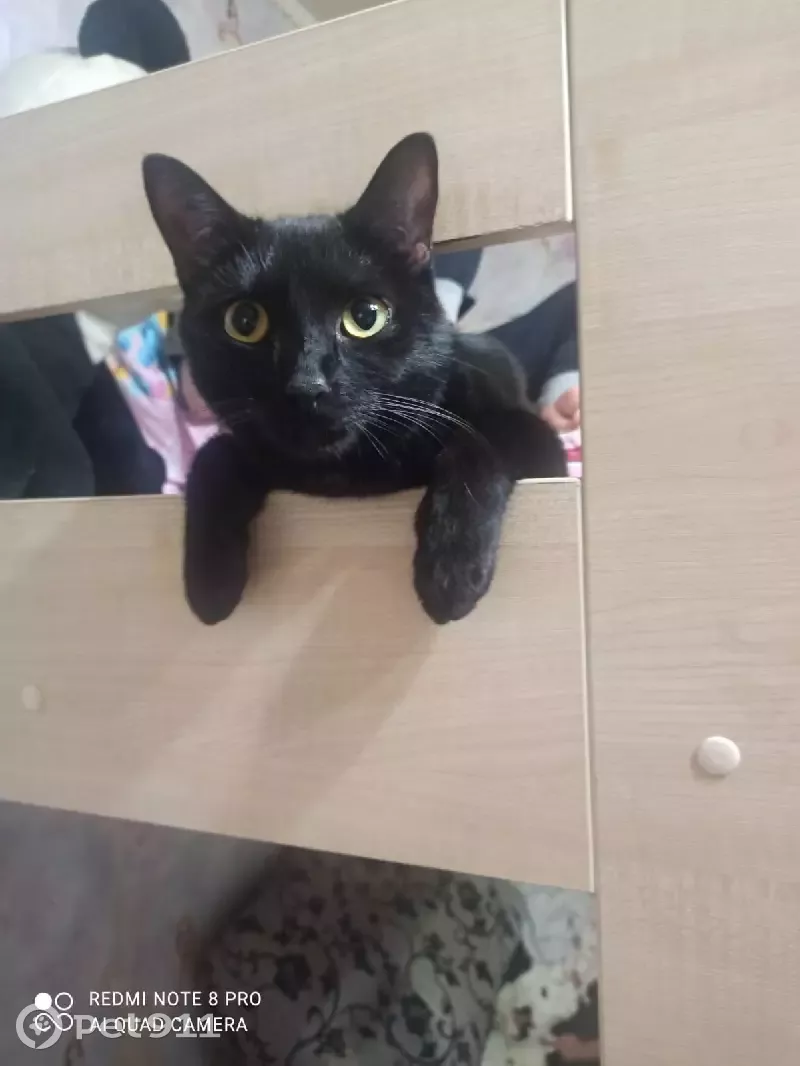 Чëрный окрас с маленьким,почти незаметным белым пятнышком на груди. Небольшого размера,мальчик,2 года. Откликается на имя Макс. Потеряли 15 июня предположительно в 16:00-17:30. Возможно выпрыгнул с окна 1 этажа на лоджии.