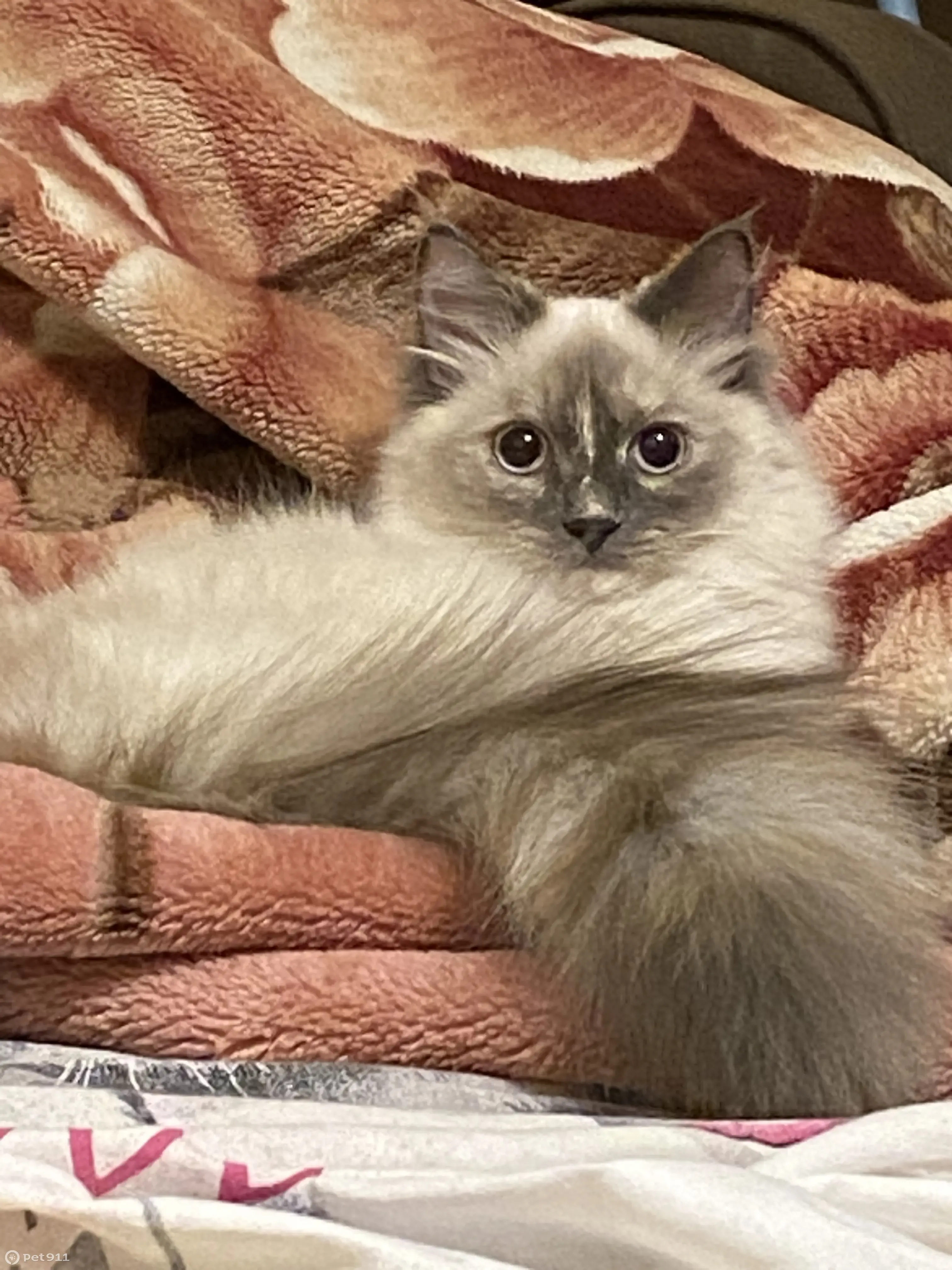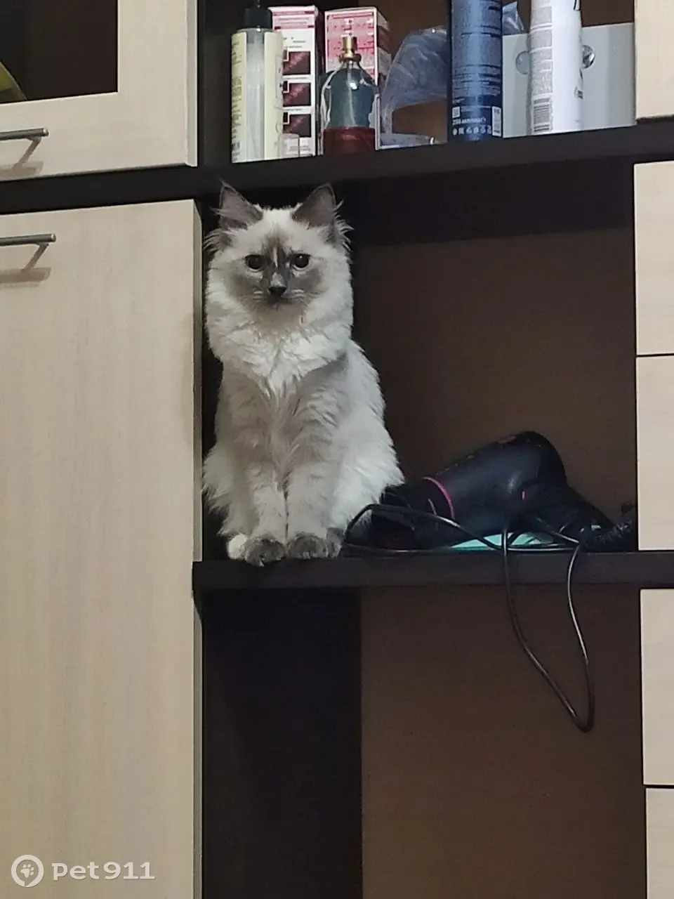 Пропала кошка, белая пушистая, с тёмной мордочкой, лапками, ушами и тёмным пушистым хвостом. Отзывается на имя Мелисса, в районе ТЦ Красная горка, Андрея Упита 7 Киров