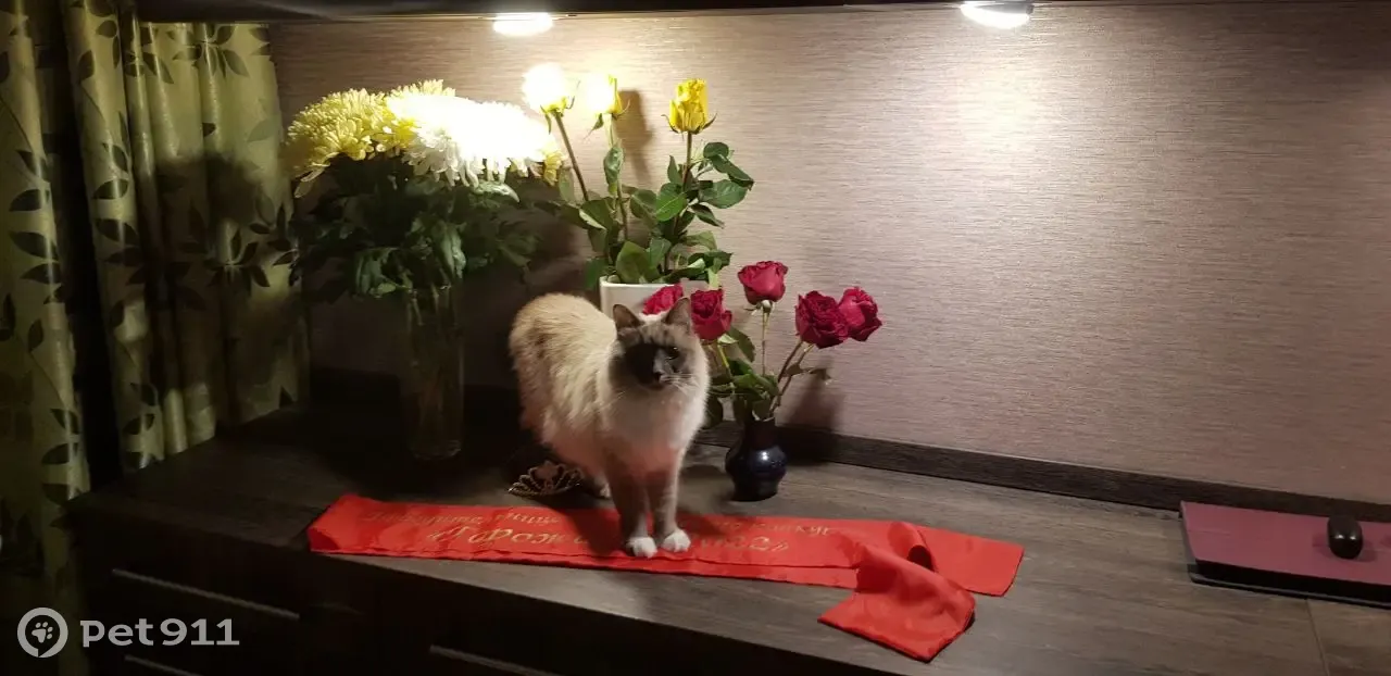 Невская маскарадная, девочка, пушистая. Очень ласковая, ручная. Выпрыгнула из окна вместе с москитной сеткой с 3го этажа. Её видели в районе дома 12.06.