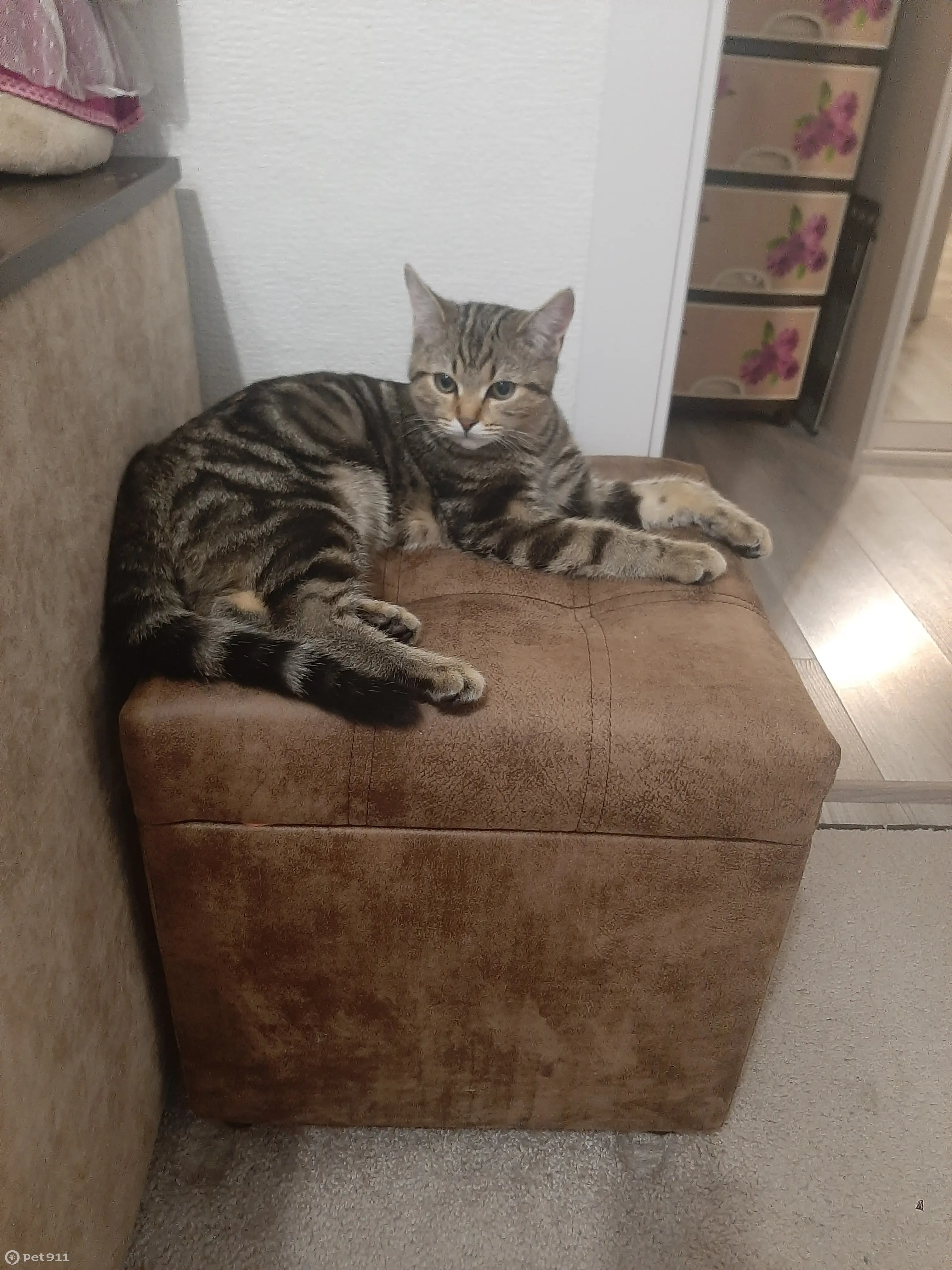 Кот выбежал из квартиры рано утром 9 июля. Раньше на улице не был, пугливый, может зашипеть на чужих. Котику 6 месяцев, но уже крупный, кастрированный.