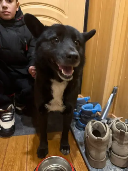 На остановке (р-н спичечной фабрики) ул. Красная Звезда рядом с магазином "Скатерть - самобранка" найден азиат, черный с ошейником. Сидит на остановке, весь заледенел. Хозяин отзовись. Азиат, где потерялся, туда и приходит.