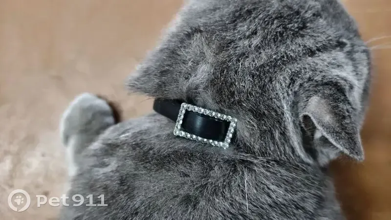 Серого цвета, ошейник черный