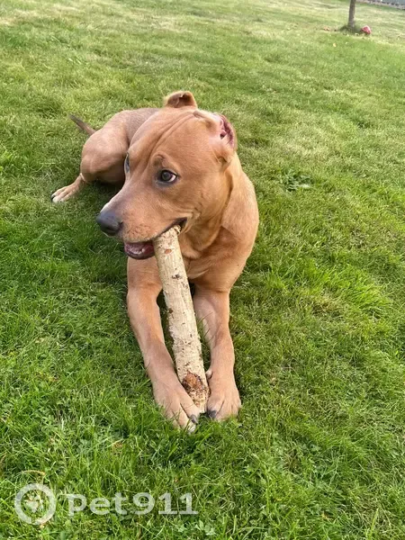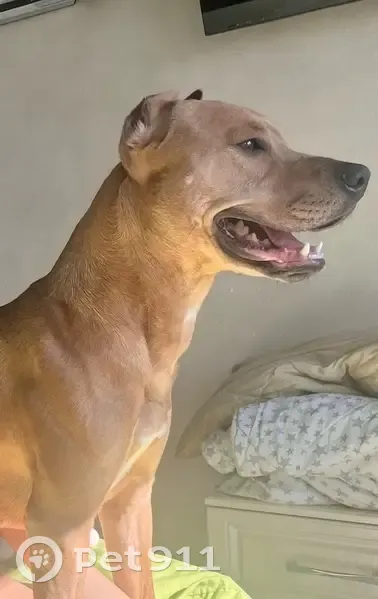 Цвет собаки рыжий. Добрый и пугливый пес, не кусается . Вырвался из машины с поводком и в строгом ошейнике.Просьба придержать либо сообщить в каком районе видели .