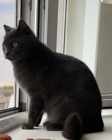 Серый окрас, зелено-желтые глаза, ласковая, пришла из неоткуда, покормили и больше не хочет уходить