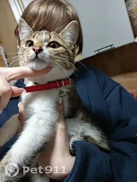 Пос. Белореченск. Крупненький котик с двухцветным окрасом бело-серый так же есть полоски, есть красный кожаный ошейник с его именем и моим номером телефона, а так же немного косолапит на задние лапки, кострирован.