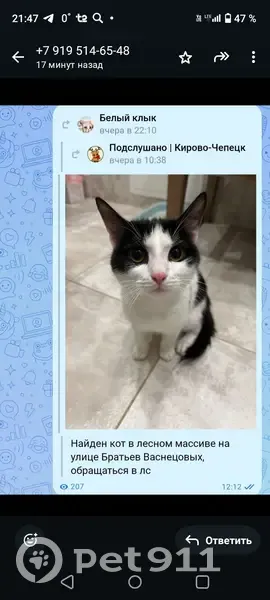 Потерянные животные Шиховское, фото: Пропал кот, Киров, Шиховское поселение