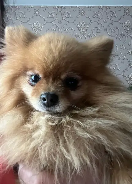 Есть такая информация,что находится у женщины в квартире,на 50 лет Октября или на Олимпийской. Вчера днем не вернулся домой.Приметы Рыжий шпиц,на груди белая отметина на нем бирюзовая мягкая шлейка с медальном на груди в виде лапки.