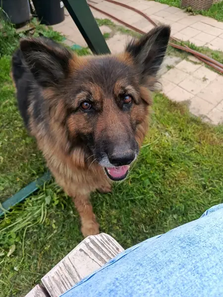 Найдена немецкая овчарка, кобель. Возраст примерно 1 год с небольшим. Окрас чепрачный. Найден без ошейника