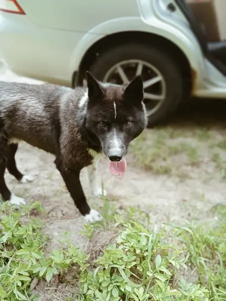Дворняга, 6 лет. Серый окрас, кончик хвоста и лапы с белым окрасом.