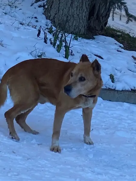 Беспородный небольшой пёс, можно по этой причине принять за бездомного, чем-то напоминает лису внешне. Кличка Чаки, возраст 6 лет. Собака постоянно живёт во дворе частного дома, близлежащую местность должен знать, потерялся непонятно как.