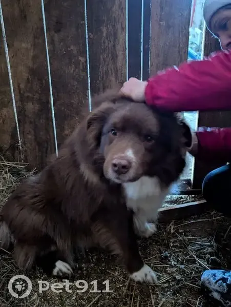 Кофе с молоком, в том числе и цвет глаз. Белая грудка. Пушистый, чистый ухоженный. Похож на бордер-колли. Бегал по дороге, ластится, запрыгнул в машину.