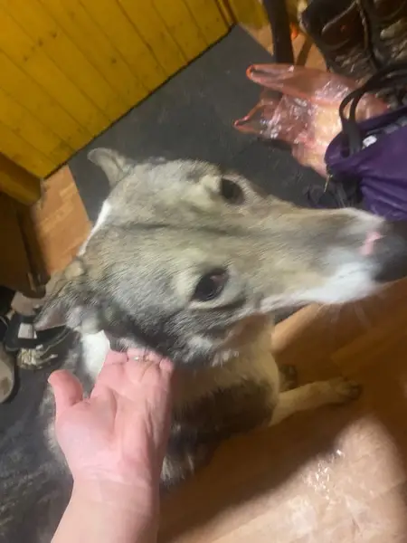Кто потерял собаку породы хаски, кожаный ошейник с красным обрамлением.