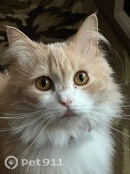 Окрас персиковый,крупный и пушистый.Кастирирован.Выбежел из подъезда 19 числа вечером