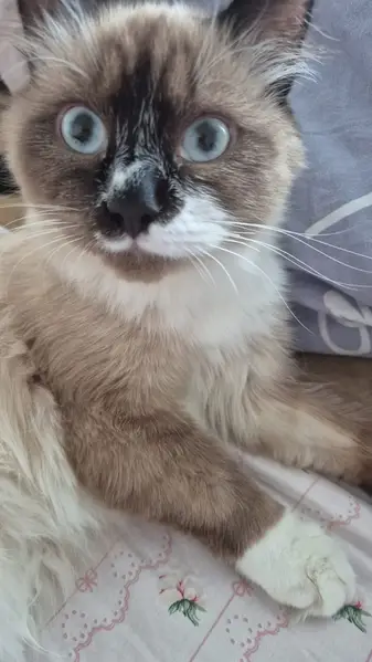 Тайский длинношерстный зовут Персик,пропал г.Когалым в районе поселка за р.Кирилл частный сектор, добрый ласковый очень ждём его домой, с информацией звоните