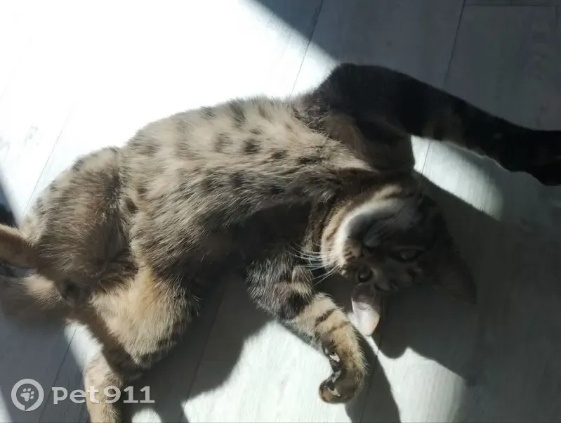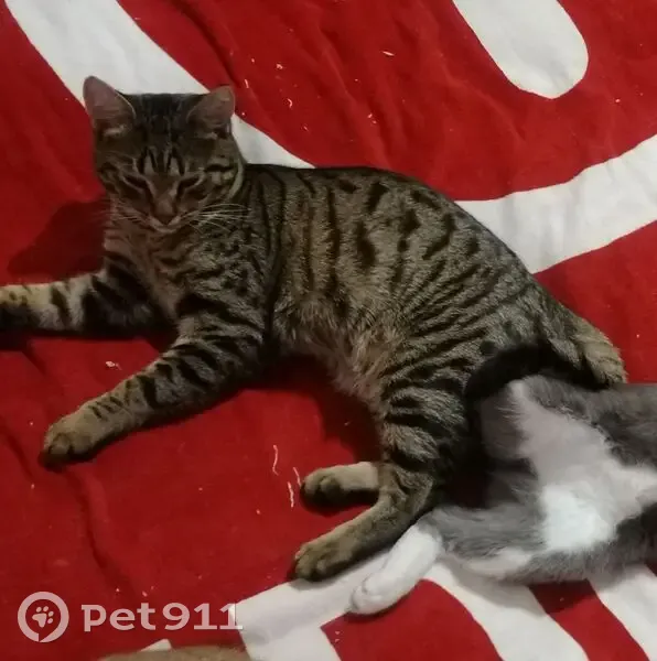 Молодой здоровый красивый ласковый котик. Чужих боится. Окрас полосатый, на лбу буква М, животик пятнистый. Гулял обычно вместе с братьями и сёстрами недалеко от дома. Местечко Оляково г Кохма (район улиц Артиллерийская, 1ая Авиационная, Суворова, 1ая Шуйская)