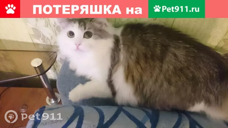 Потерялась кошка в г. Кохма на Заводской улице, дом 3, домашняя, не породистая. Белая, с серыми пятнами, хвост и спинка серые. Отзывается на кличку Марси. Не углядели, выбежала из подъезда, не нашли. Жила с нами 8 лет, на улицу одну не выпускали, гуляли на шлейке, но улицу боится. Если где-нибудь её видели, большая просьба позвонить. 8 960 510 72 06 Не идёт на контакт с чужими, боится улицу.
