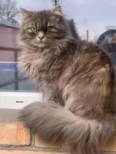 Кошка беспородная, но интересный окрас. Ласковая, очень любит, когда ее гладят, и мурчит. Кажется, что беременная, живот большой.