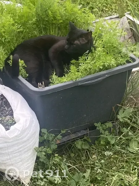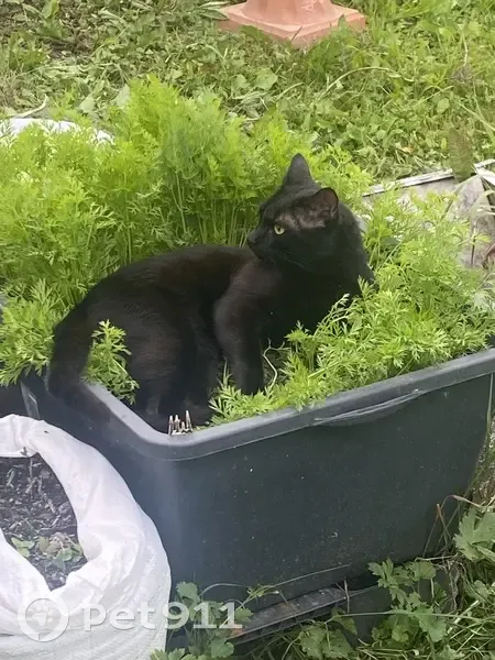 Пропал кот( не кастрирован).Окрас чёрный, но на солнце выгорает и кажется коричневатым. На правой передней лапе под лопаткой нет клочка шерсти(подрался с котами).
