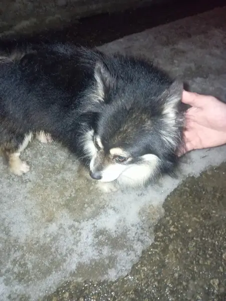 Шпиц триколор ( чёрно-белый-рыжий ) контактная очень любит людей