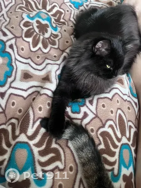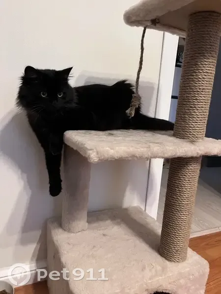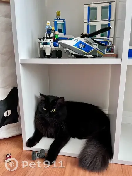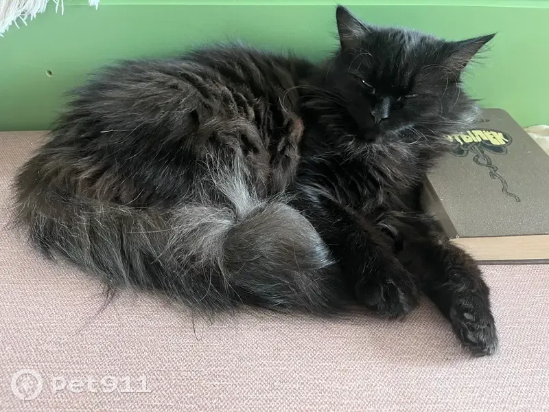 Шерри. Выпала из окна. Пушистая. На первый взгляд вся черная, но воротник серый и сама темно-шоколадная. Пугливая. Взяли в январе этого года дикой, сейчас идет на руки, гладится. Но на улице, скорее всего куда-нибудь забьется и на имя не выйдет.